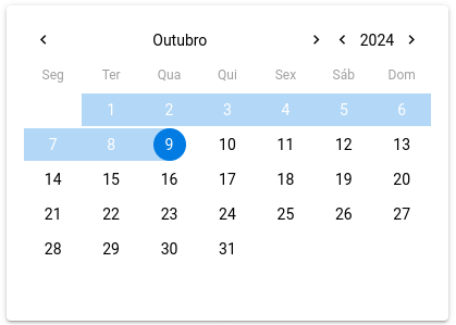 Com o calendário é possível selecionar o filtro de período das informações a serem exibidas nos gráficos de movimentações financeiras.
