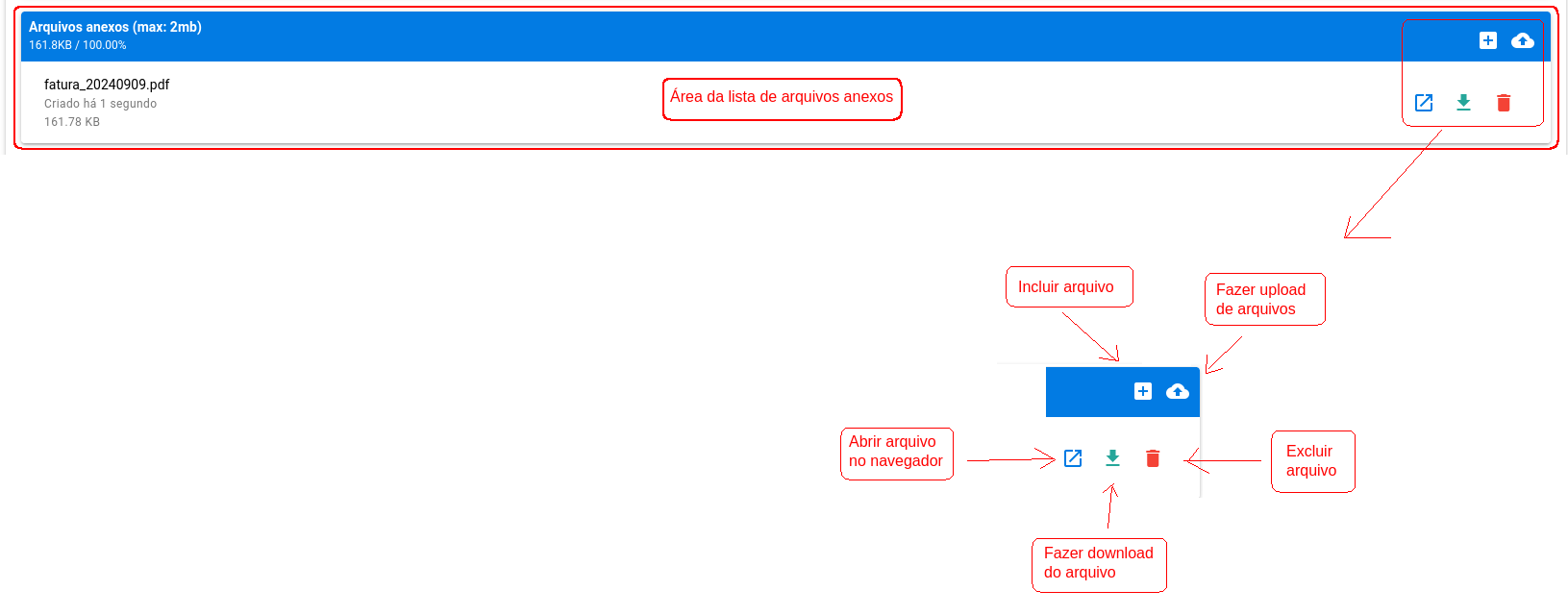 Os arquivos anexos tornam possível armazenar no JU Financeiro arquivos que tenham relação com o cadastro ao qual os anexos tenham sido vinculados.